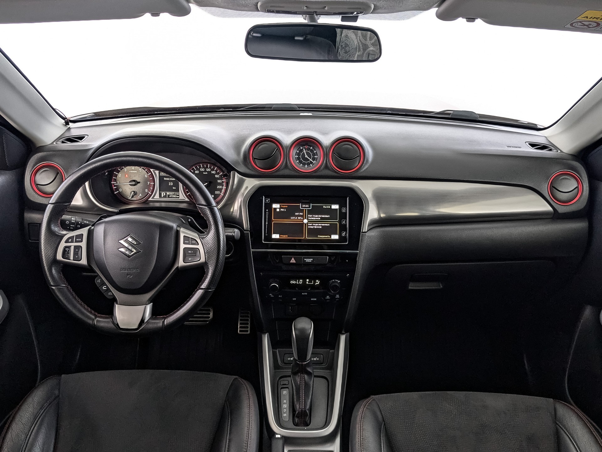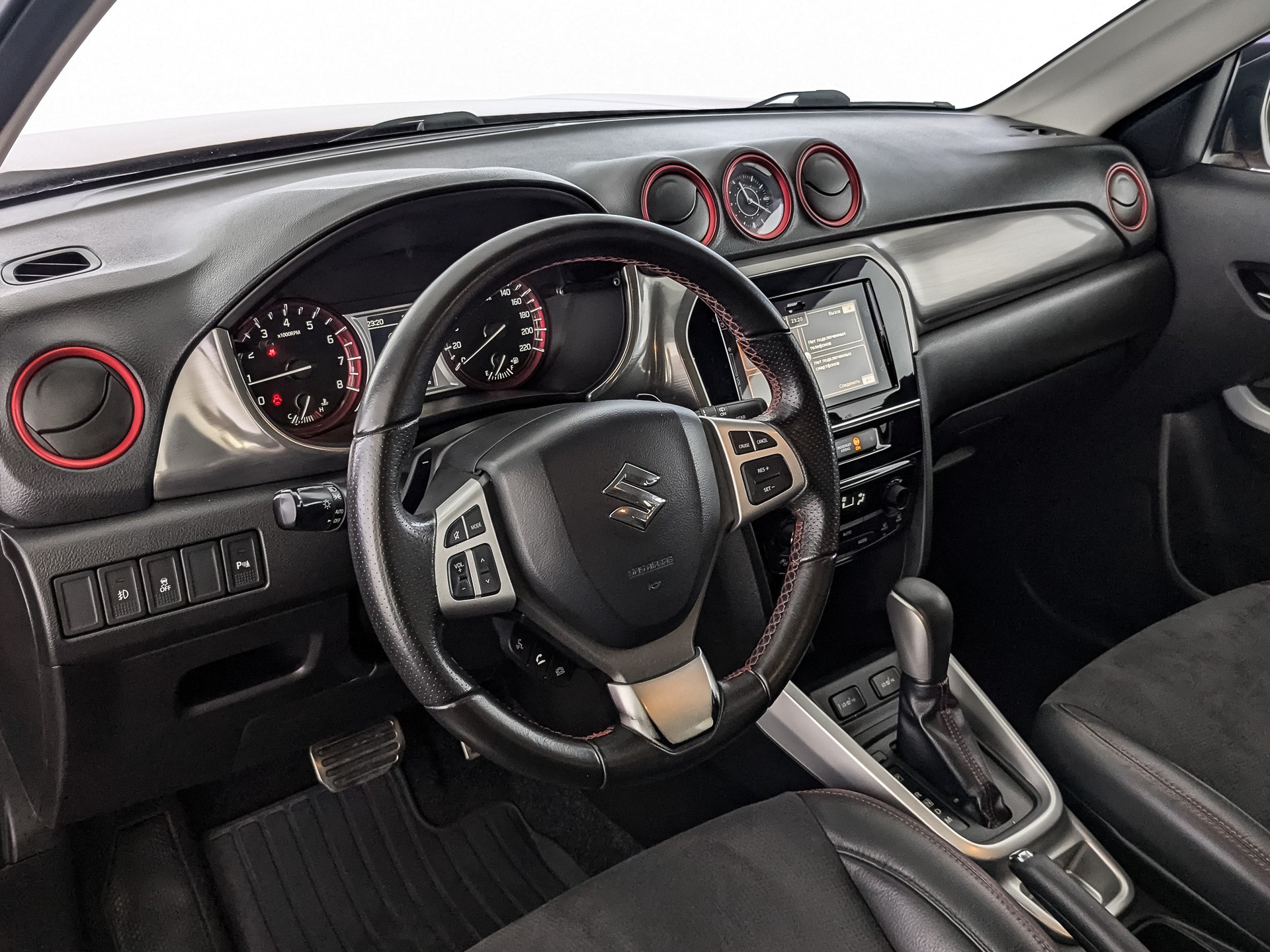 - Комбинированная обивка сидений (кожа + замша + красная прострочка)